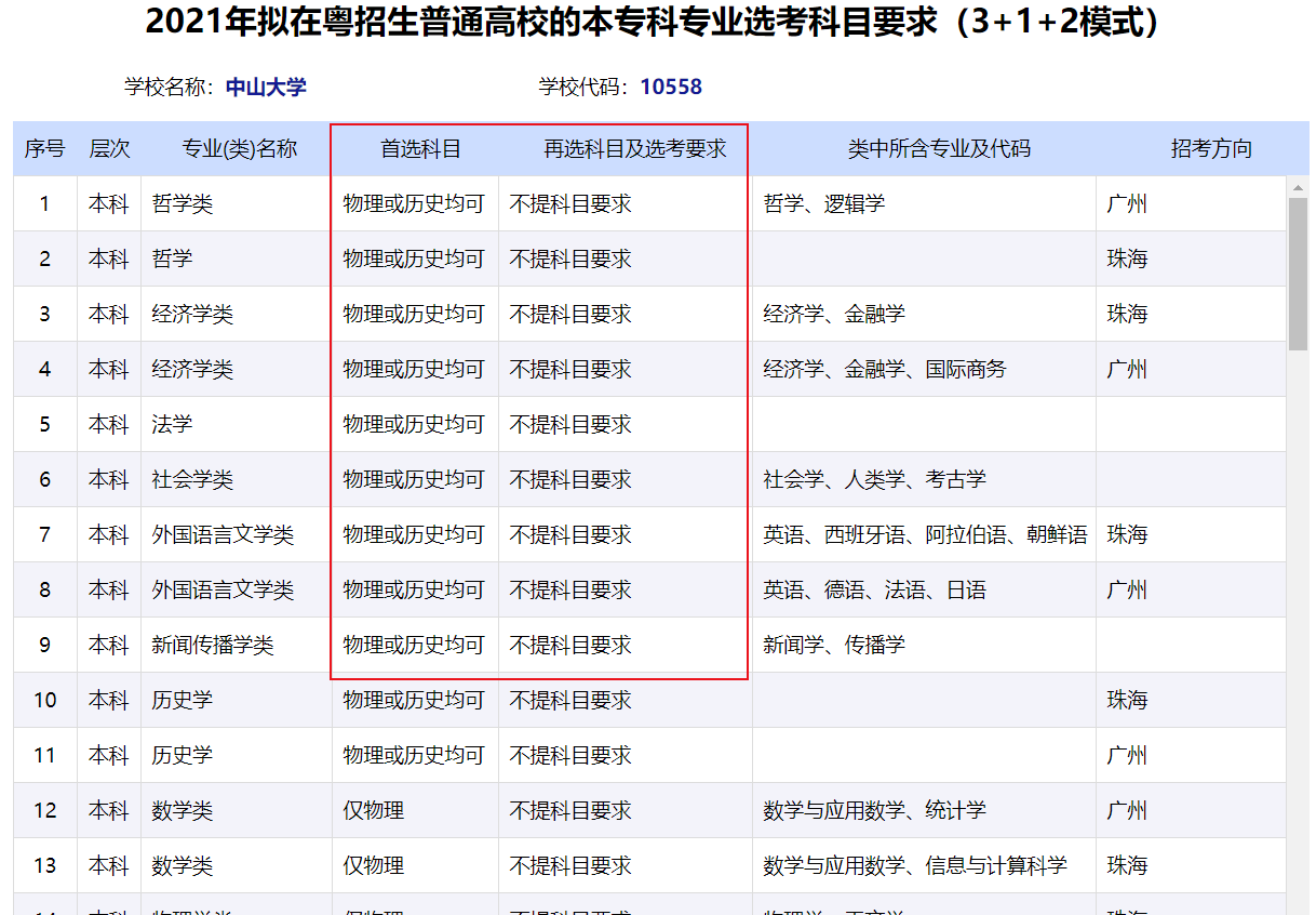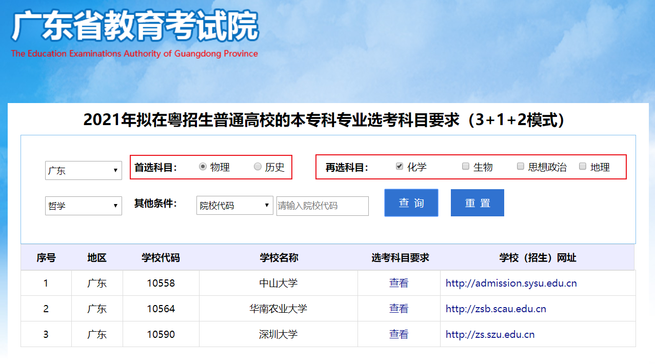 [政策动态]2021年拟在粤招生普通高校专业(类)选考科目要求查询系统