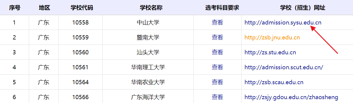 点击“学校(招生)网址”跳转到该院校招生网