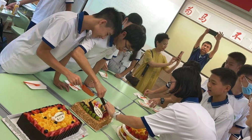 初二五班占同学家长感言:一群朝气勃勃的青少年,有的愿意分享自己的学习心得体会、有的也不怕与同学坦承自己的苦恼、更有的用自己的才华逗笑同学们,这是一场轻松又不失严谨的分享会,更是同学们自我展示与坦露心声的交流方式。同学们自己组织自我成长,他们的这种自信、天真与乐观是中大附中这片沃土培育出来的,精心准备的十四岁生日蛋糕,更体现老师默默关注同学们成长的点点滴滴。这是一场温暖、快乐、又充满积极向上的分享会!