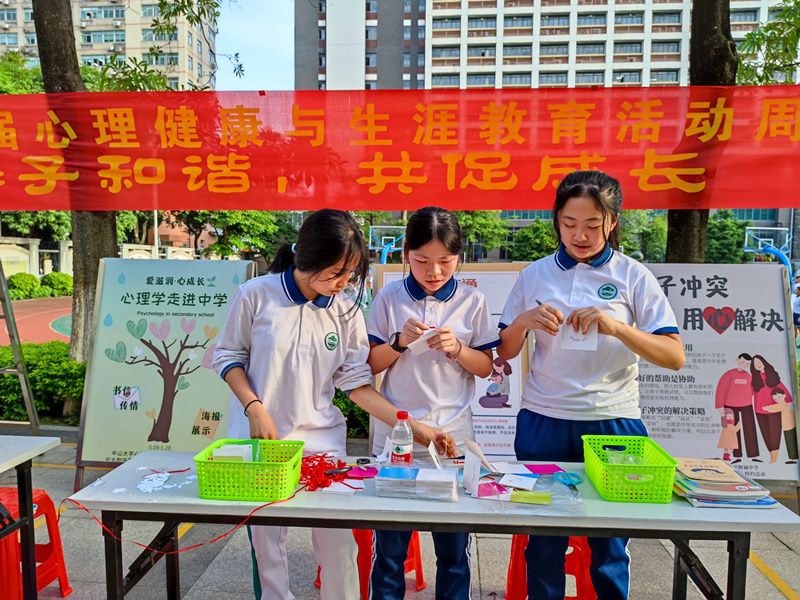 没想到,近日学校心理老师举办的心理生涯周活动恰恰是贴心地考虑到这一点,奔着为我们释放学习压力和缓解亲子关系来了。具体活动分别有:家长职业真人图书馆、树洞诉心声、书信传情、亲子香囊制作等。这些多彩的心理活动就像及时雨,给心灵添加养分。