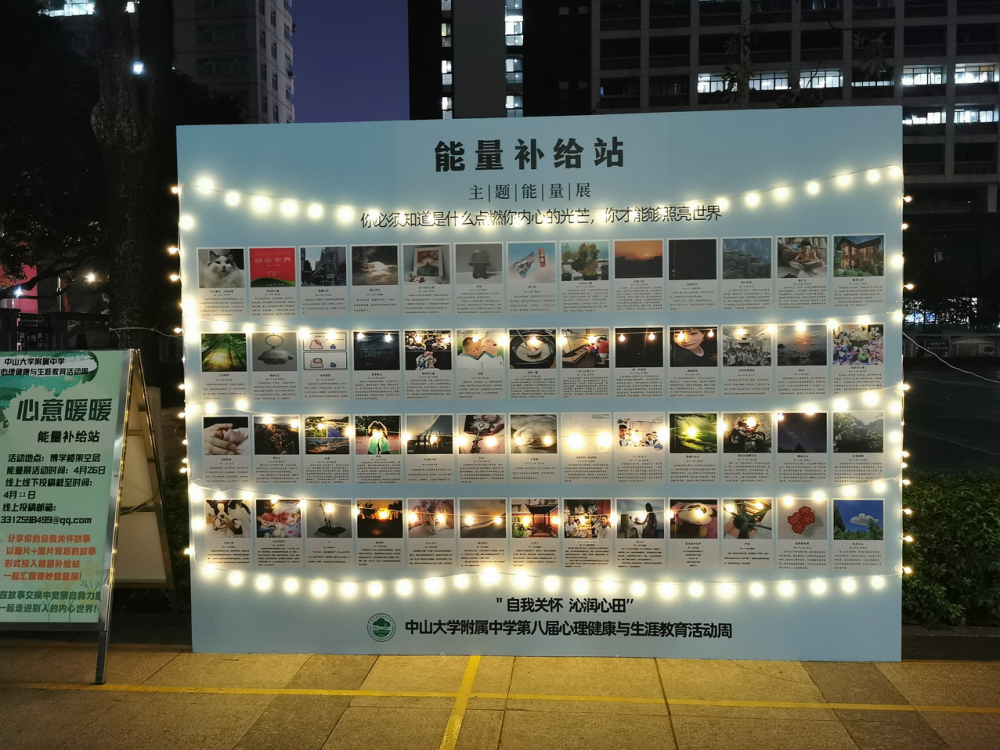 站在能量展板前,我们跟一个又一个故事相遇,欣赏着一张又一张意义非凡的图片,不知不觉天色也渐渐暗了下来,而此时的能量展板上装饰的灯串闪闪发着光,我们心中我们的世界蓦然点亮……