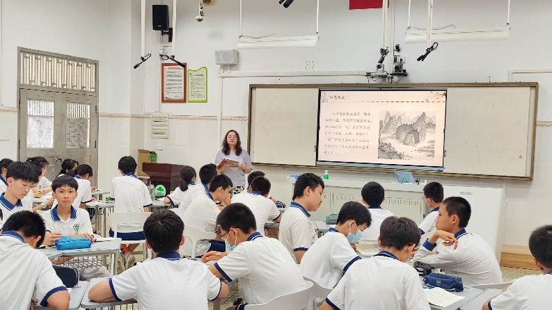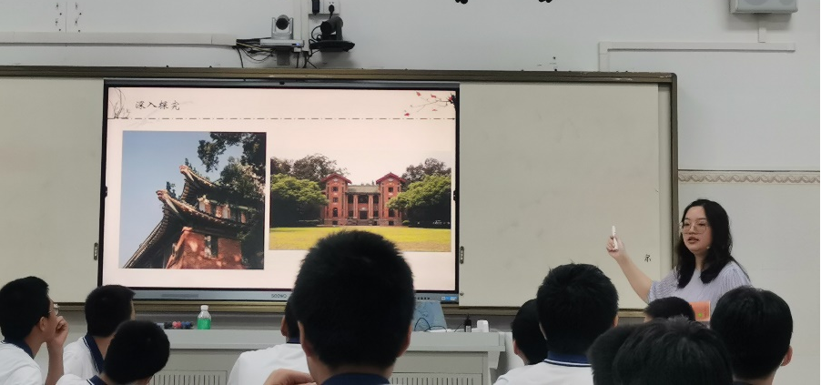 “如果这篇散文就是一幅立体丽江图,“我”在何地见到何物,体现了丽江的什么特点?”这次,张老师将全班同学分为六个小组进行讨论,问题一出,班里便热闹了起来。“我在黑龙潭看到人们在桥上,在堤上,说着不同的语言。城里也不是只有最初筑城的纳西人了。如今全中国全世界的人都要来丽江,体现了丽江的开放与包容”,“我在四方街看到了古城,看到了狮子山上苍劲的老柏树,看到了依山而起的重重房屋,看到了顺水而去的蜿蜒老街,体现了丽江城市依自然的和谐与美好”,“我在街道店面经过叮叮当当敲打着银器的小店。经过挂着水一样碧绿的翡翠的玉器店。经过一座院子,白须垂胸的老者们,在演奏古代的音乐。经过售卖纳西族的东巴象形文字的字画店,体现了丽江的文化悠久、民俗醇厚、温情满满”……张老师走下讲台亲切主动地加入同学们的讨论,平日少有发言的同学这时也在氛围的驱动和大家的鼓励帮助下大胆说出了自己的看法,教室里满是同学们思维碰撞与交汇的火花。张老师还特地为大家搜寻了课文里所述之地的图片,令同学们赞叹向往不已,仿佛置身其中。