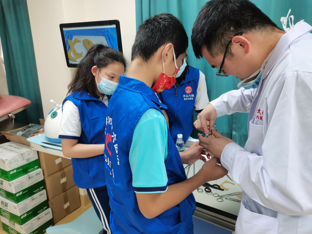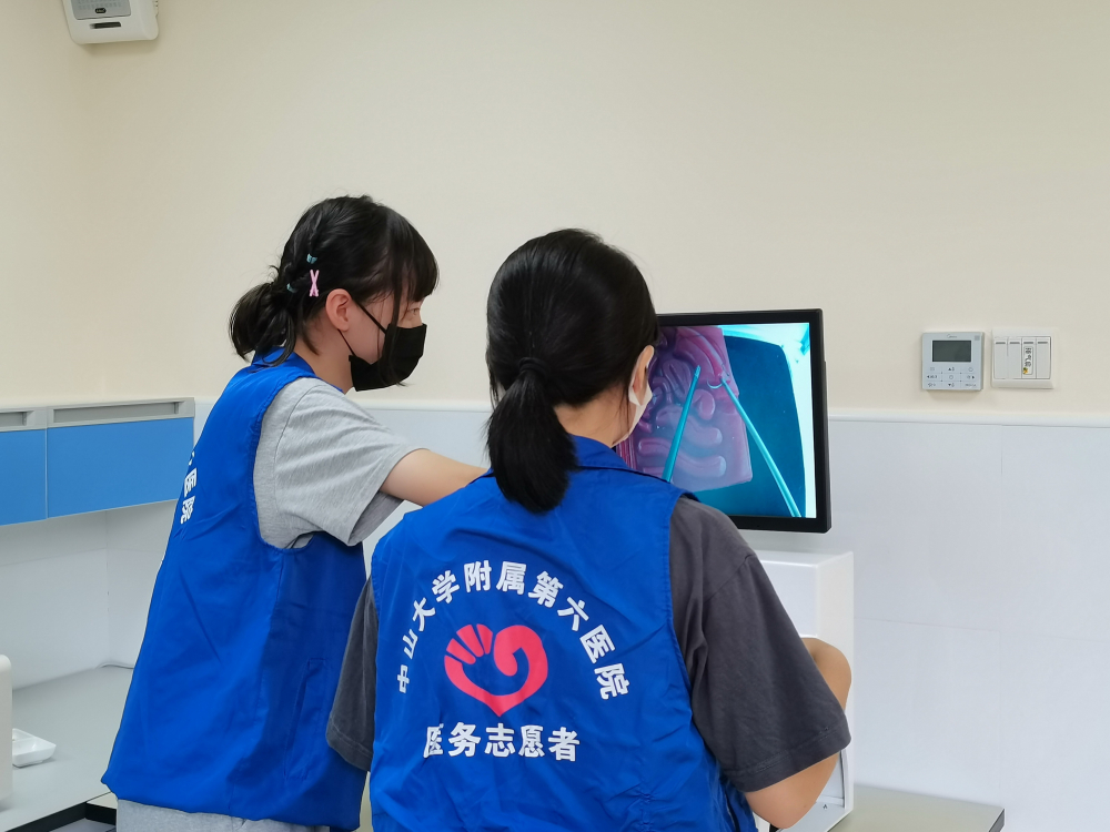 8月中旬,我们5班在班主任和家委的策划下,我们分成了几批来到中山大学附属第六医院作为志愿者去体验医生普通的工作日常。