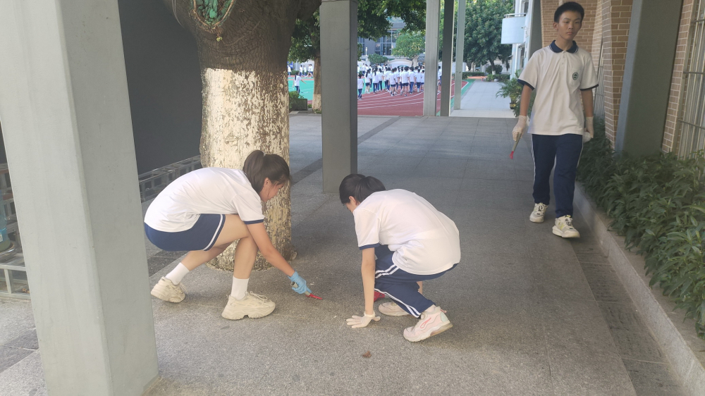 9月26日下午放学前,我校初一7班主动承担了第一次校园卫生清洁行动,即清理地面口香糖等顽固污渍特别行动。