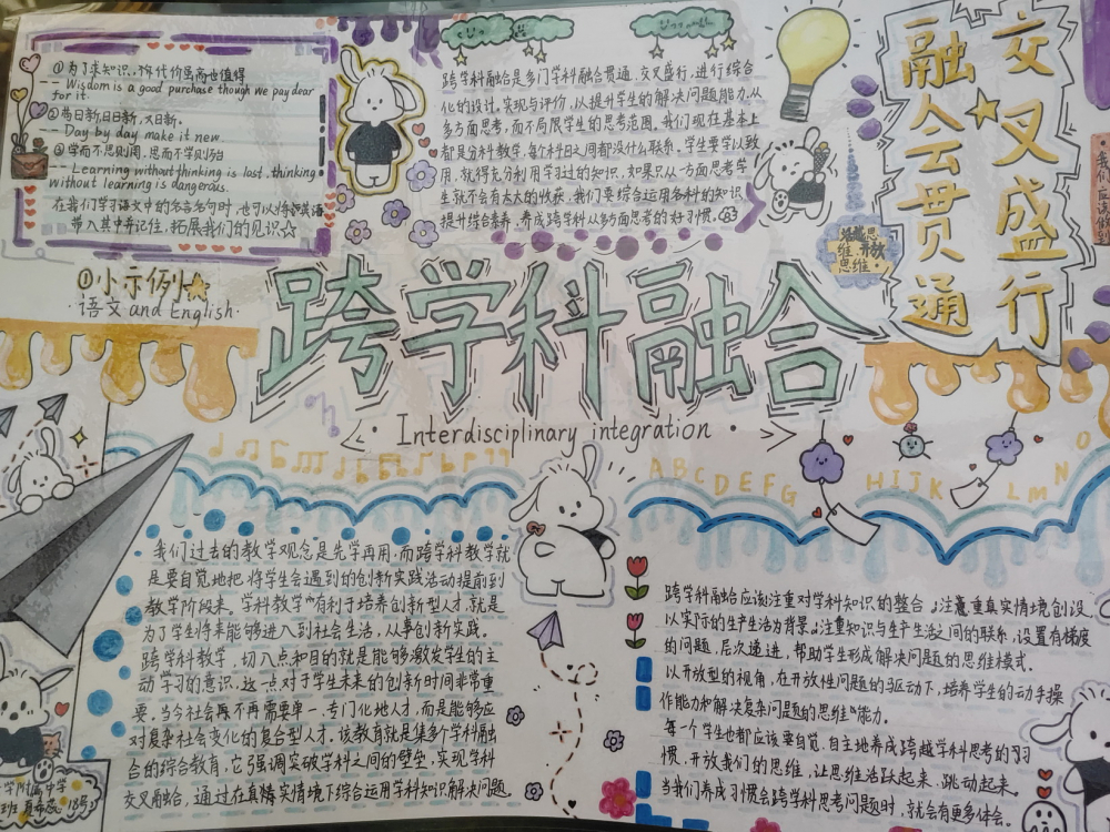 由校第十五届艺术节组委会主办,初一年级组承办的艺术节跨学科融合手抄报比赛,经过近一个月的动员、宣传、作品收集、评选等阶段的精心组织,于近日落下帷幕。