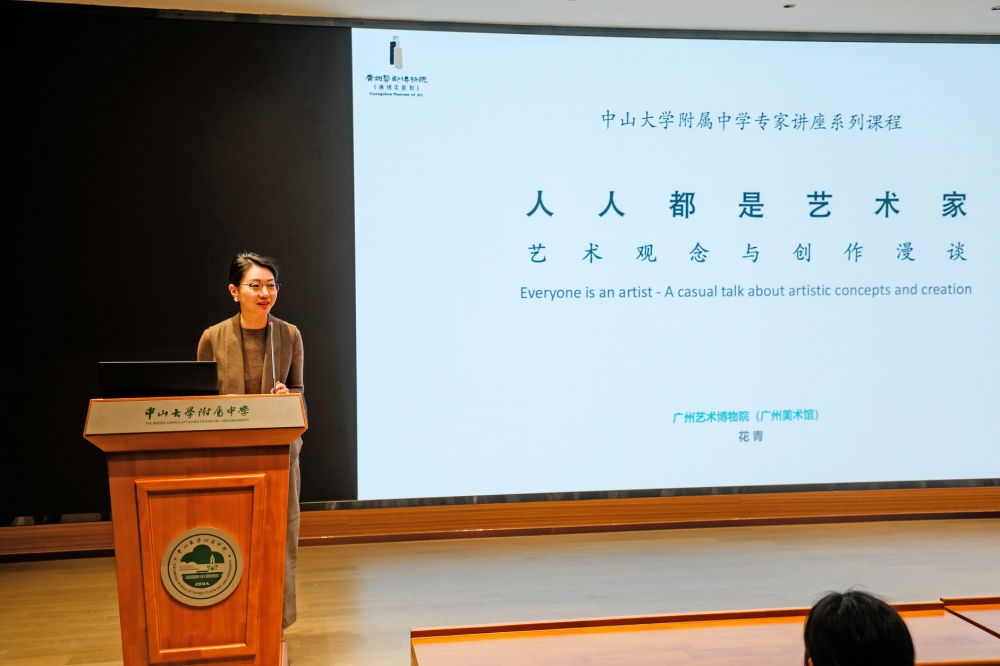 2024年11月19日下午,一场别开生面的讲座在我校的阶梯教室里热烈展开。此次讲座是中山大学附属中学专家讲座系列课程的一部分,主题为“人人都是艺术家——艺术观念与创作漫谈”,主讲人为广州美术馆的王华菁博士,她同时也是广东省美术家协会会员、广东省女画家协会理事及上海点美术家协会会员。