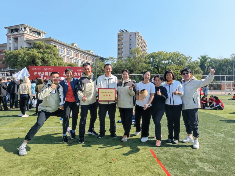 12月8日,不畏寒意渐浓,附中老师一行12人参加由中山大学机关分工会组织的“世纪华诞展风采,凝心聚力开新篇”教职工趣味运动会。这次我们和南校区附属幼儿园的老师们组成了“阳光先锋队”。这是一支阳光向上,勇当先锋的队伍!