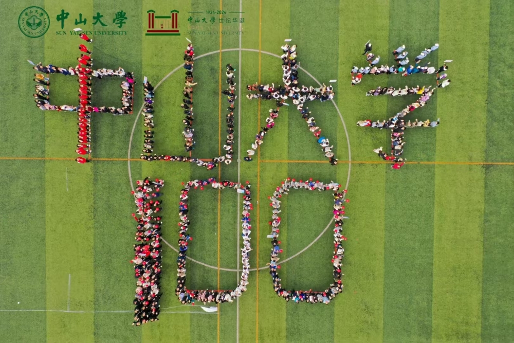 初冬的阳光驱赶云团,将温暖撒入康乐园。大约9点半,参赛的520多名运动员进行集体航拍,大家热情洋溢地齐声喊出“百年中大,山高水长”。在偌大的西大球场,“中山大学100”的字样铺展开来,可谓壮观。热情洋溢,充满阳光,我们为中大百年华诞增添活力。