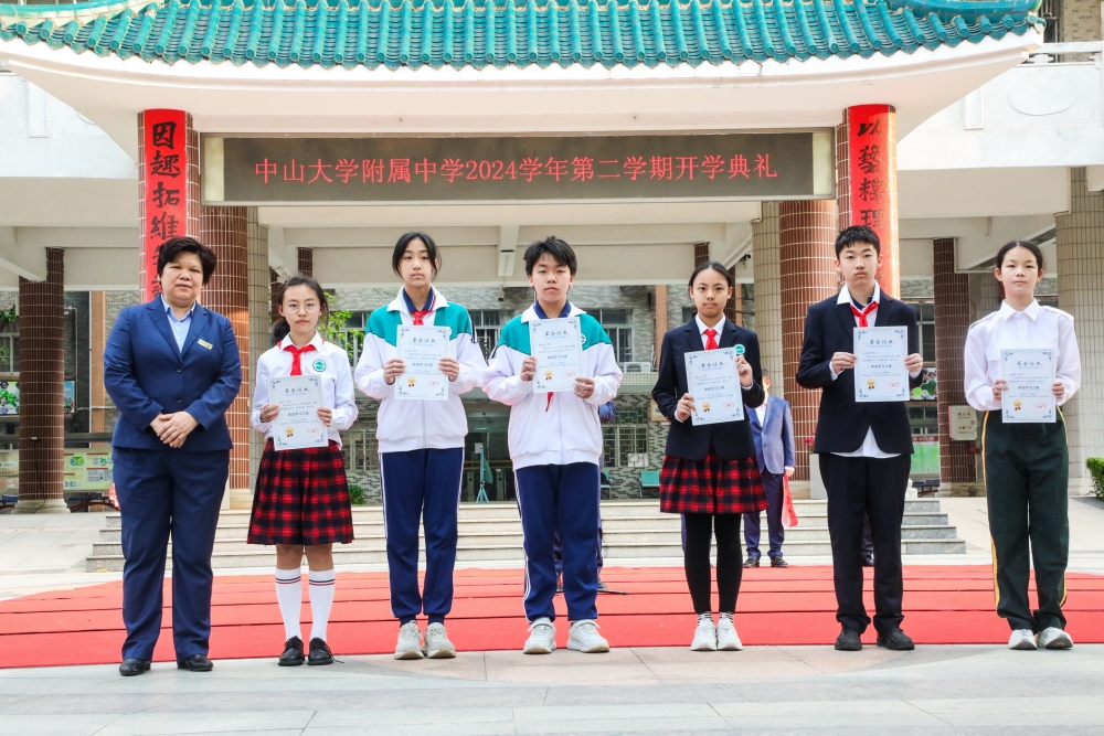 随后,国旗班同学昂首挺胸,踏着正步向我们走来。在庄严的国歌声中,五星红旗徐徐升起,与师生共同见证新学期的到来。