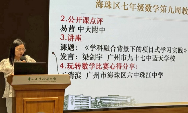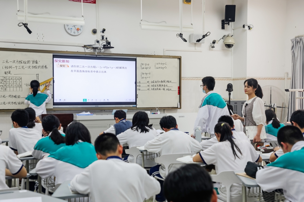 2025年4月11日,海珠区教育局教研室在我校成功举办七年级数学区级公开课活动,以“二元一次方程的图像”为主题,全区30余所初中的数学教师代表参与观摩研讨。