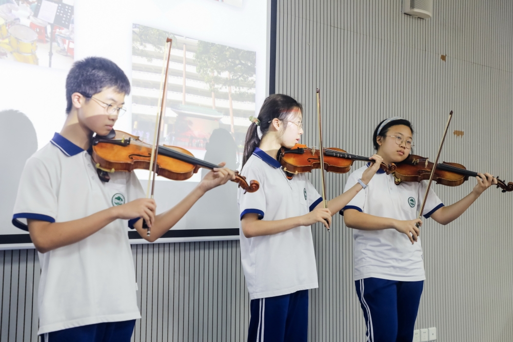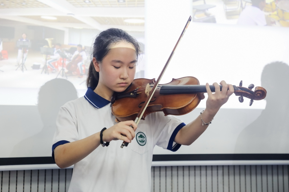 活动现场,各展示小组纷纷亮出“看家本领”,特色课程成果如百花竞艳、精彩纷呈。视频展示组凭借精心剪辑的画面,将课程中的精彩瞬间生动地重现于众人眼前;PPT 展示组以精美的视觉设计搭配流畅的讲解,牢牢吸引着在场观众的目光;更有创新展示组别出心裁,采用现场演奏的形式,悠扬的小提琴声与和谐的和声相互交织,为现场带来了一场独特的艺术盛宴。