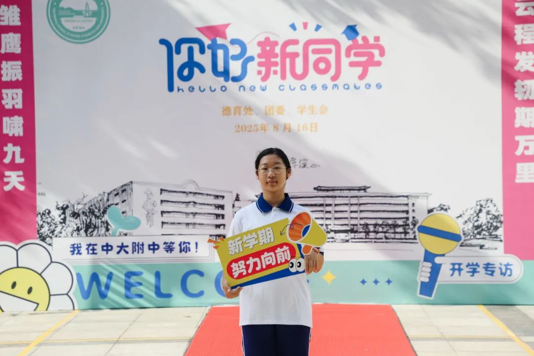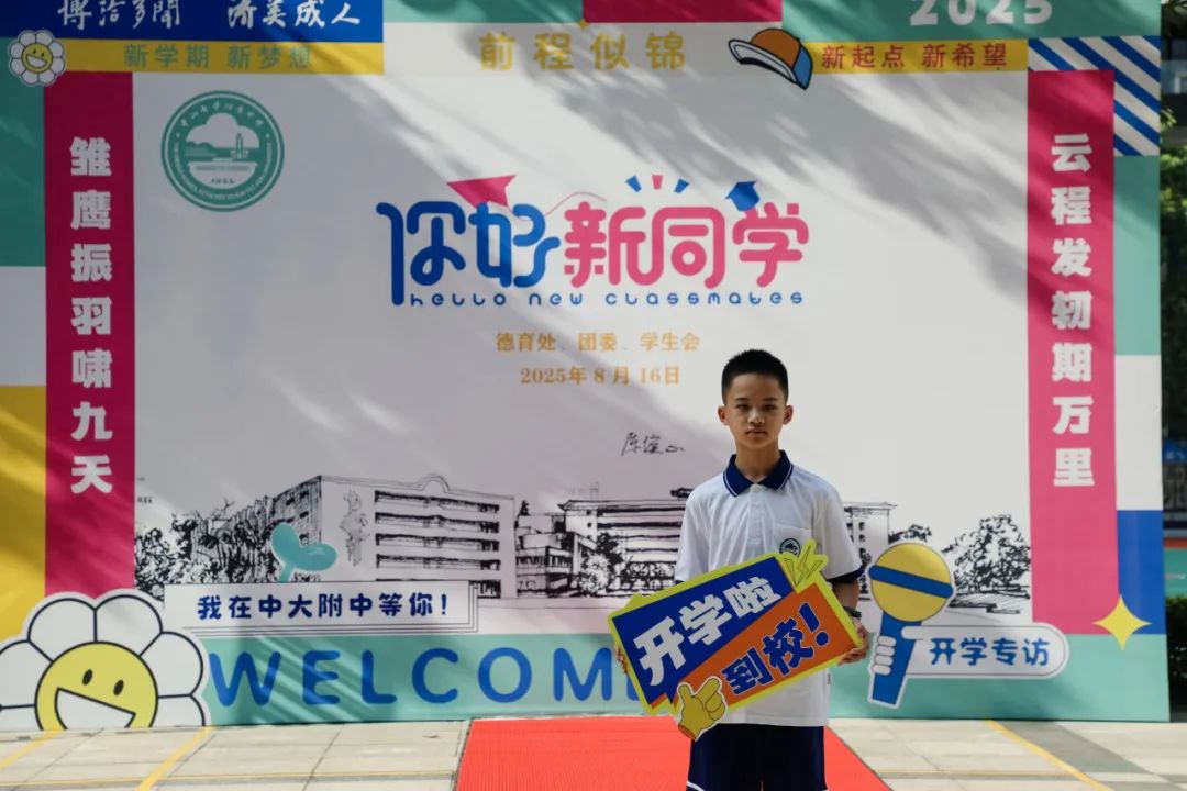 秋阳杲杲,温柔而热烈。8月16日,满怀憧憬的追梦少年,带着美好期盼,伴着父母叮咛,踏进了美丽的中附校园。你好,我们2025级的初一新生,中大附中热烈欢迎你们加入我们这个亲和的大家庭。