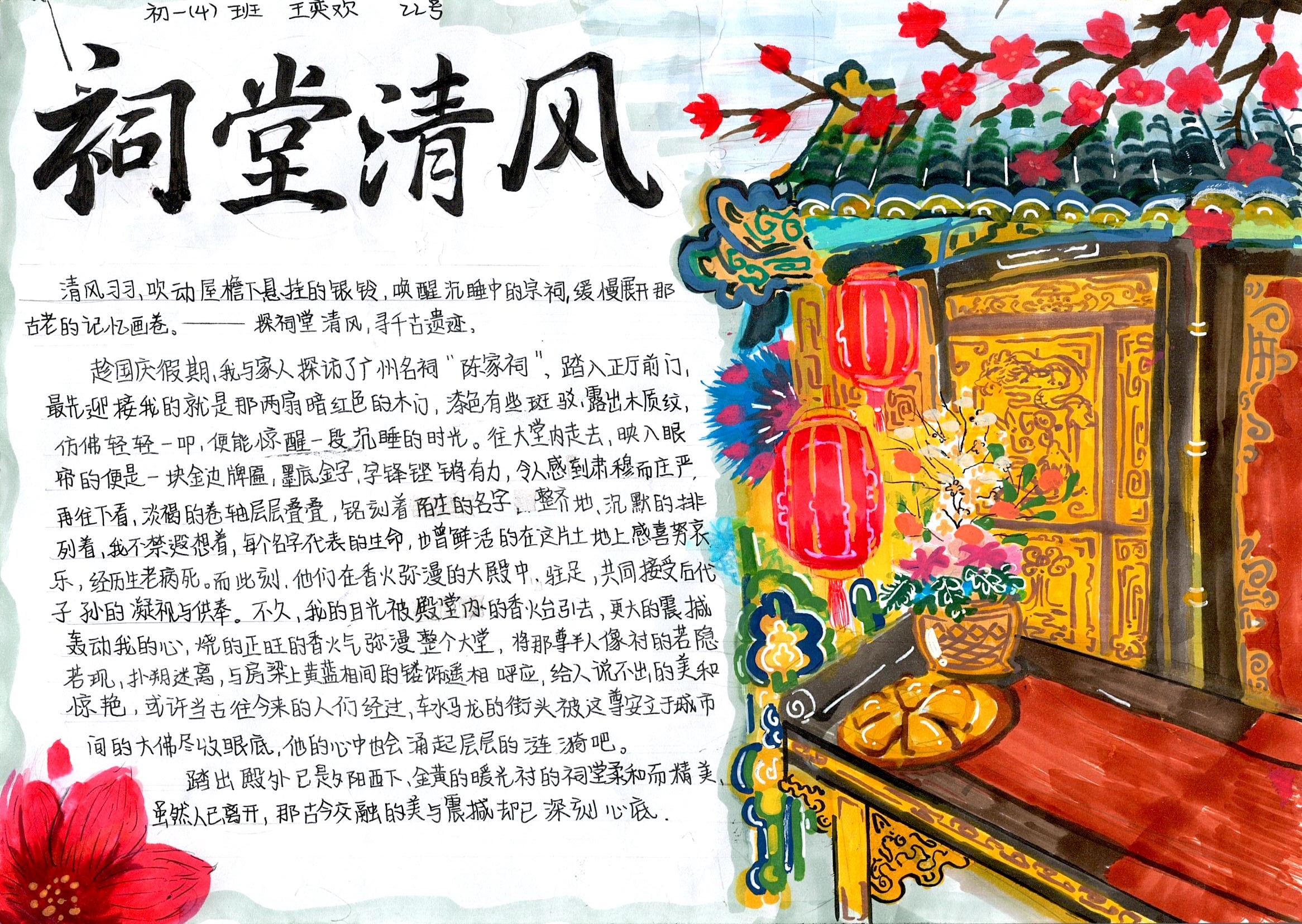国庆期间,部分同学在父母的带领下走访了广州陈家祠,在飞檐翘角与青砖灰瓦间感受岭南建筑与家族文化的深厚底蕴;返乡探亲的同学则走进自家祠堂,聆听长辈讲述先辈迁徙的往事甚至鲜为人知的革命故事。大家逐渐意识到,祠堂不仅是古老建筑,更是承载家族记忆的载体,帮助我们理解“我从哪里来”,也引导我们思考“要往何处去”。