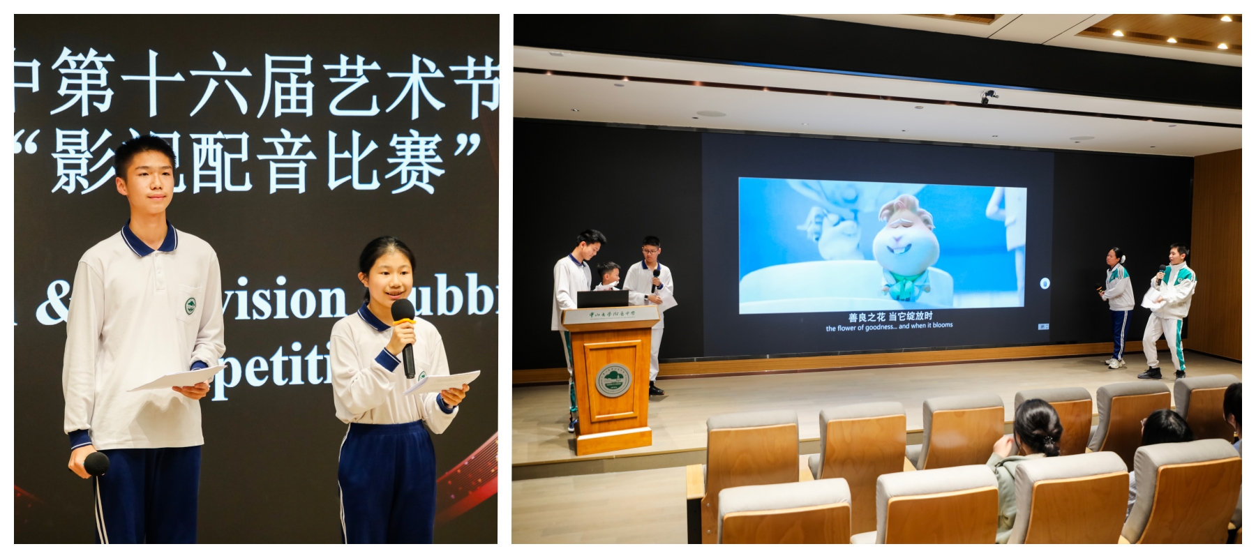 为营造多元外语实践氛围,提升学生核心素养,我校第十六届艺术节期间,外语组于12月2日至5日相继举办了日语、德语和英语三场影视配音大赛。系列活动以“声临其境”为主题,旨在通过趣味配音激发学生学习兴趣,锻炼语言综合运用与团队协作能力,为同学们提供了展示才华、感知语言魅力的广阔舞台。