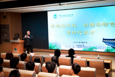 随后,罗金星副校长以“承逸仙文化、创博济特色、育时代英才”为主题,开展师风师德专题讲座。他结合校史沿革、办学特色与自身教学经验,阐释素质教育理念与育人准则,引导全体成员领悟师德真谛,坚守育人初心。互动环节中,罗校长针对课程教学相关问题逐一细致解答,为研支团成员提供实用指导。