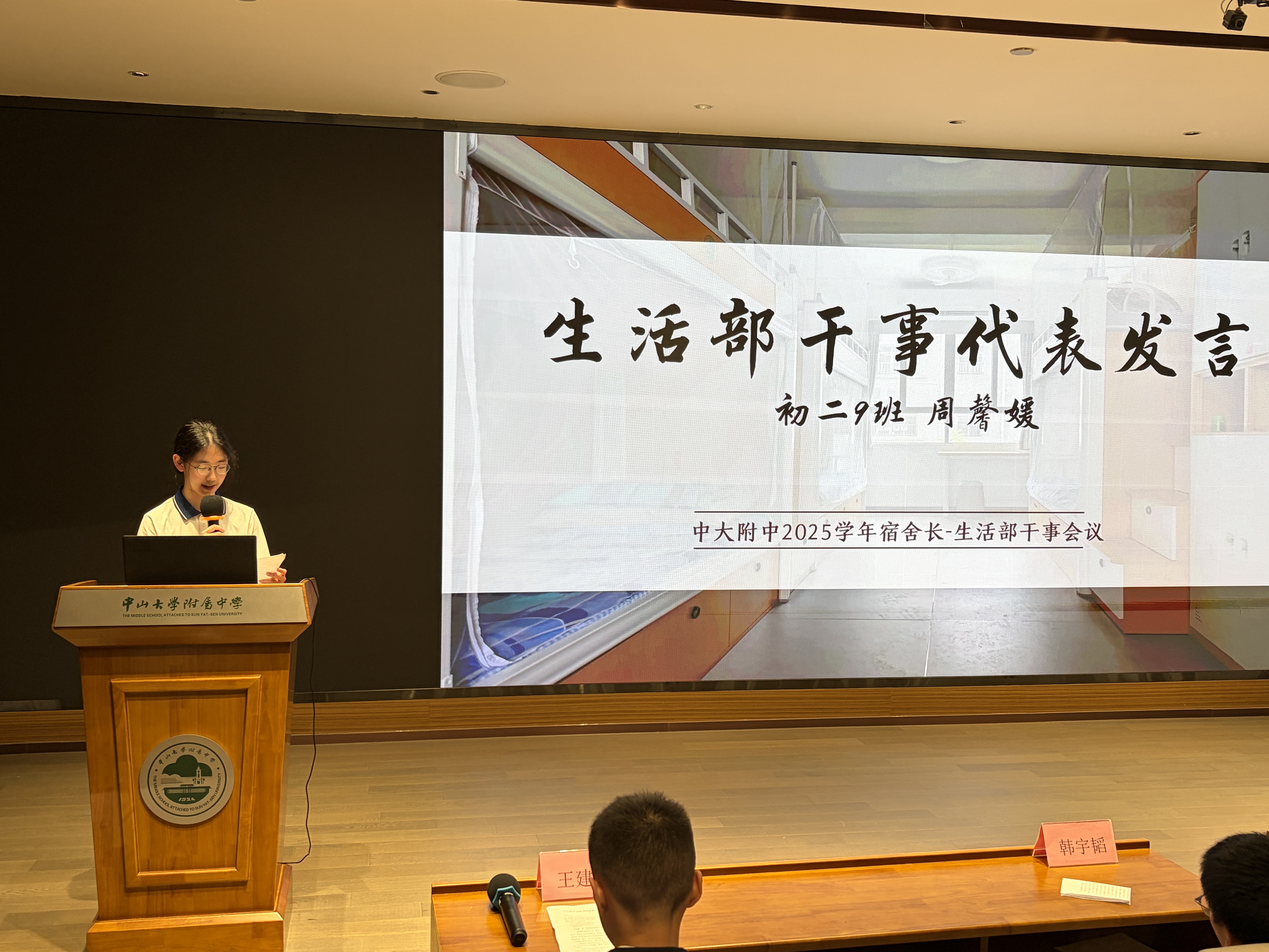 苏恒泽老师围绕宿舍干部职责,从多维度解析宿舍管理难题并给出解决方案,勉励大家通力合作、共同进步。宿舍长代表韩宇韬分享宿舍矛盾化解经历,生活部干事代表周馨媛介绍部门职能与工作感悟。